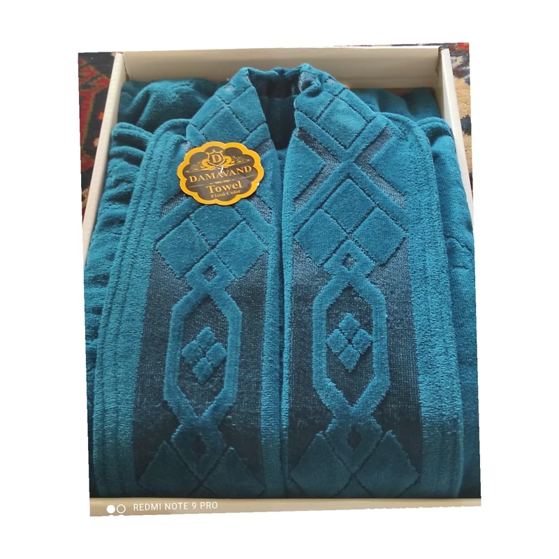 حوله تن پوش اعلا سایز 125 جنس عالی با ضمانت کیفیت بالا رنگ اکتیو و ثابت یقه ابریشم بدنه کار شده با کمربند و کلاه تولیدی اصفهان